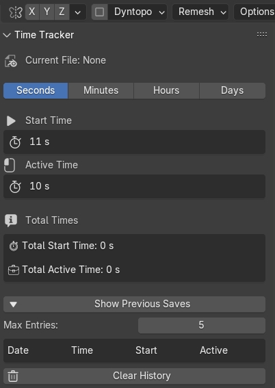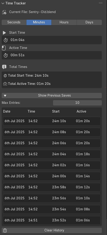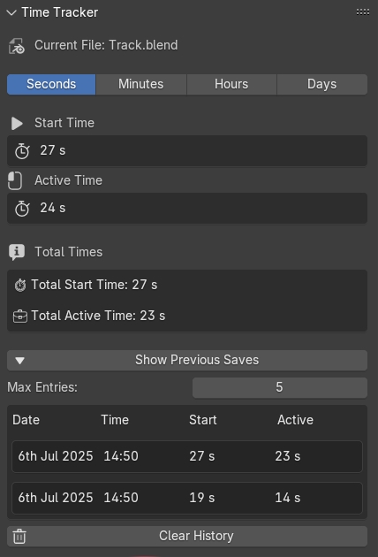 - π Automatic Time Tracking: Begins tracking time as soon as a .blend file is opened.
